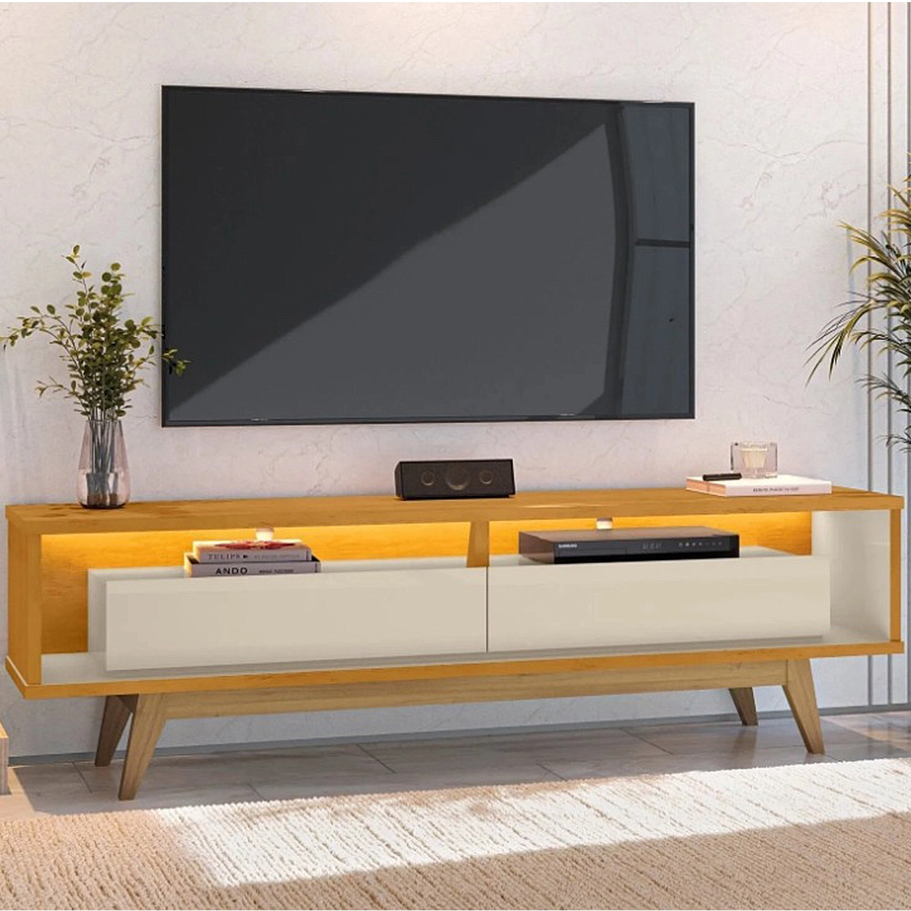 Rack Roma 180cm para Tv Até 65 Polegadas com LED e 2 Gavetas Rv Móveis