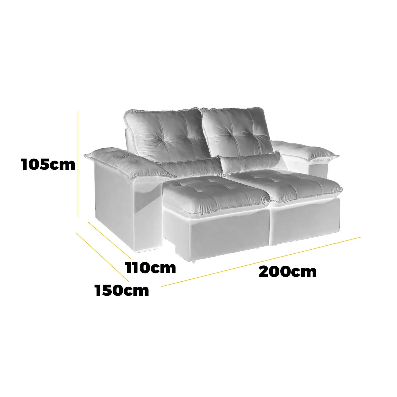 Sofá Arsenal 3 Lugares Retrátil e Reclinável 200cm Tecido Veludo Aifos
