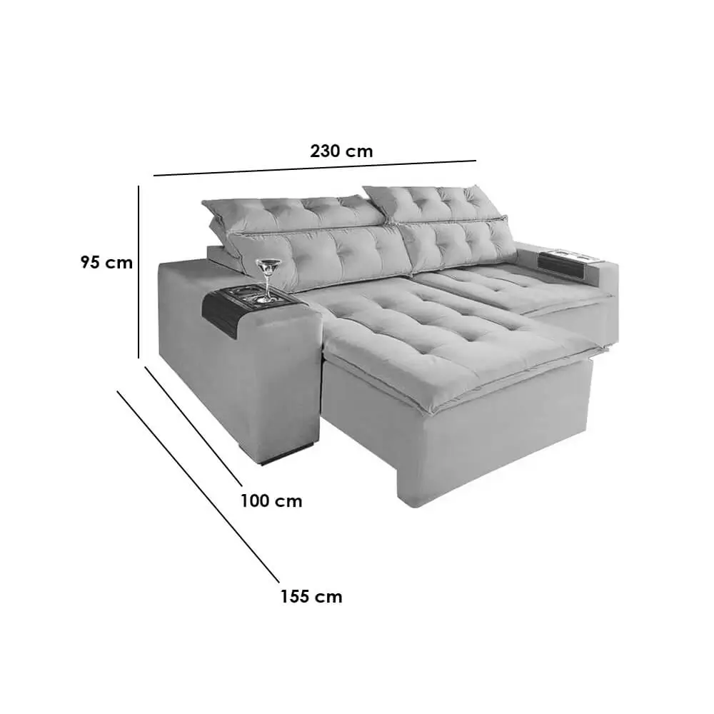 Sofá Carioca 4 Lugares Retrátil E Reclinável 230cm Tecido Veludo