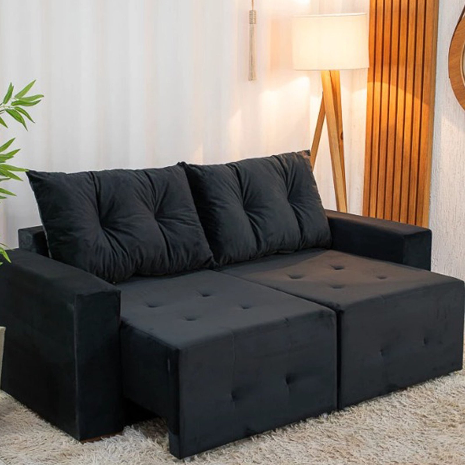 O Sofá Havai 2 Lugares Retrátil e Reclinável 180cm Tecido Veludo Felipe Estofados é um modelo retrátil e reclinável focado em salas compactas, oferecendo um bom equilíbrio entre custo e benefício.