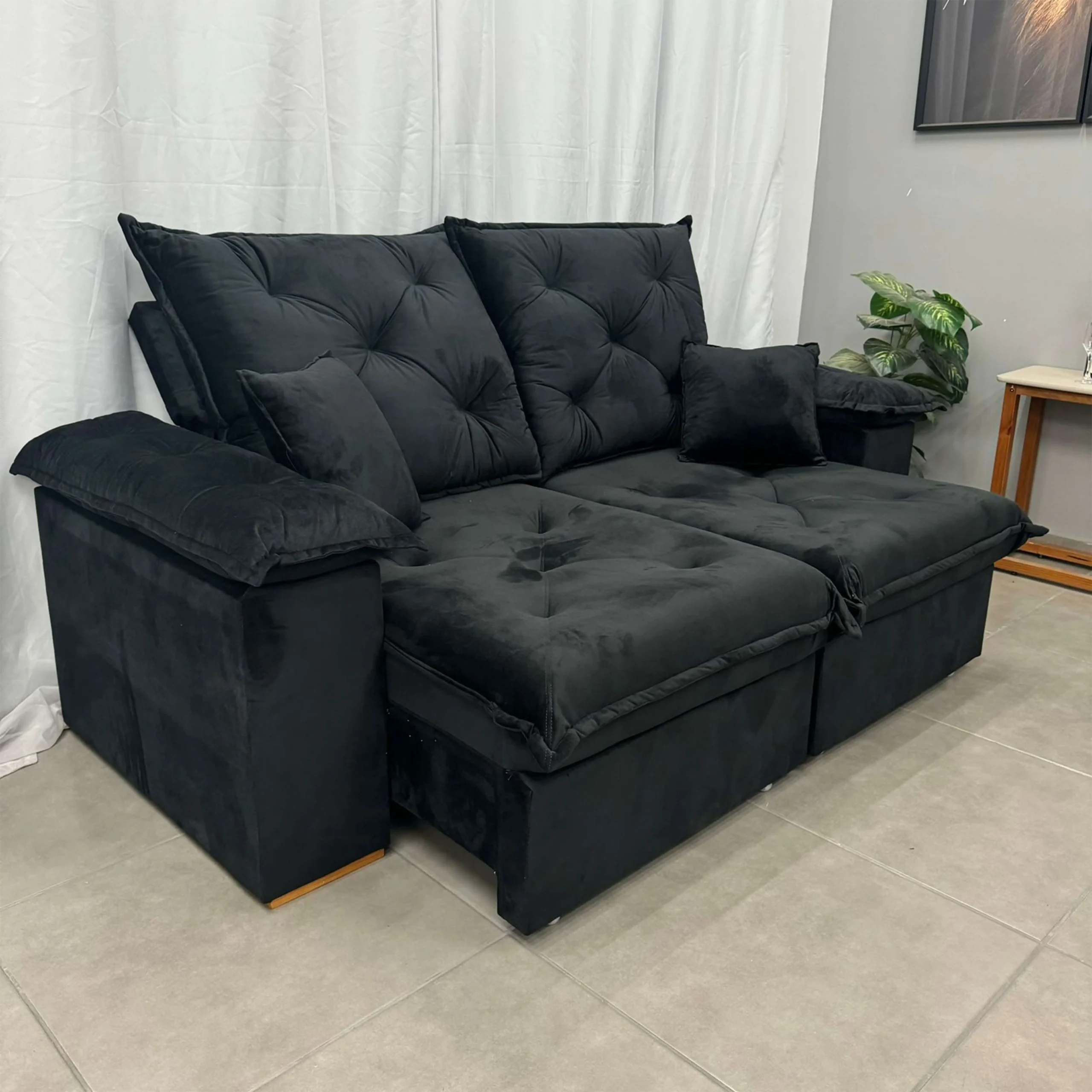 Com 200cm de comprimento, este sofá oferece amplo espaço para acomodar confortavelmente até mesmo as visitas mais animadas. E com a opção retrátil e reclinável, você pode encontrar a posição perfeita para assistir TV, ler um livro ou simplesmente relaxar.