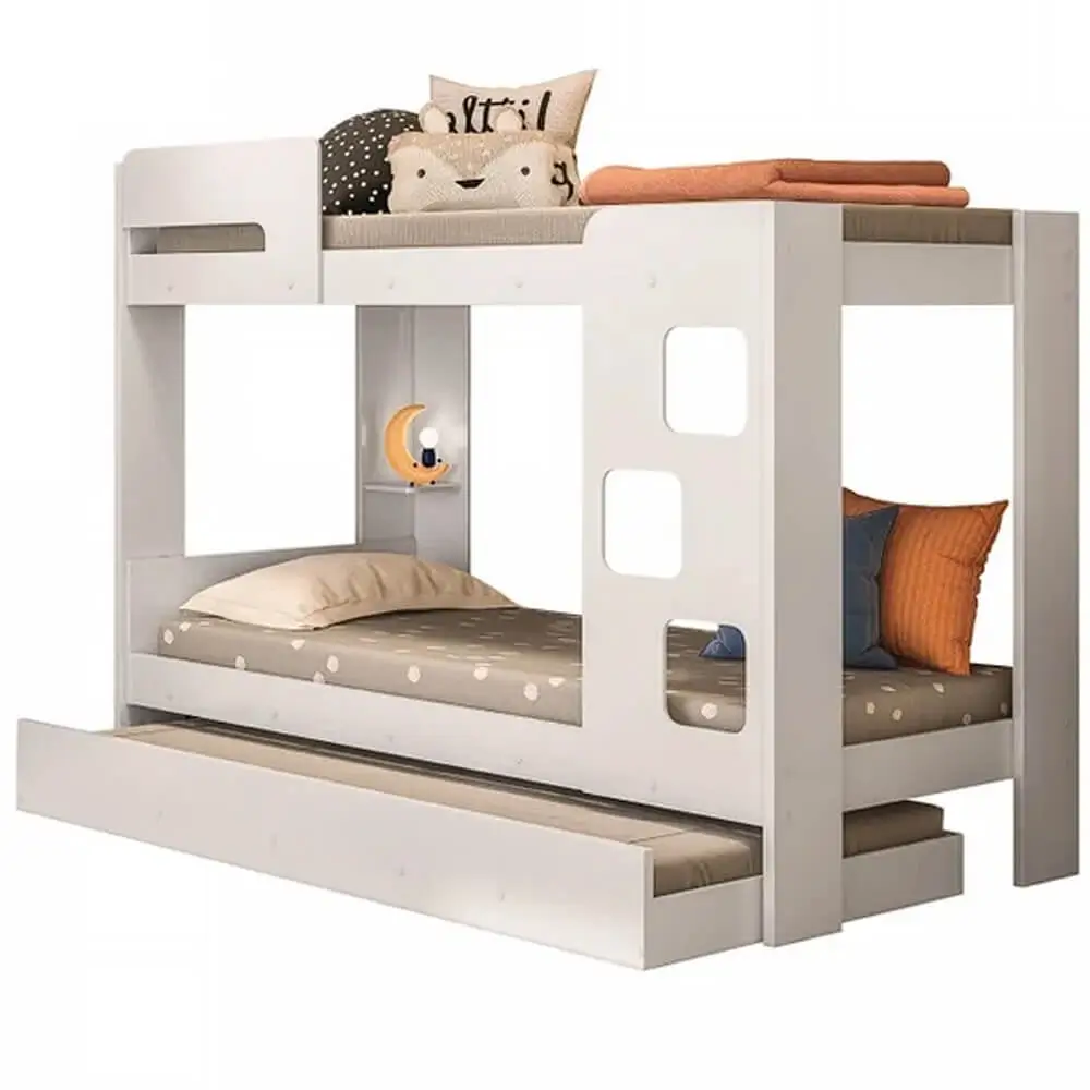 Sua escada é projetada na frente para facilitar o acesso à cama superior quando montada em ambiente apertado, pés e barras em MDF de 25mm dando total resistência e segurança durante o uso.